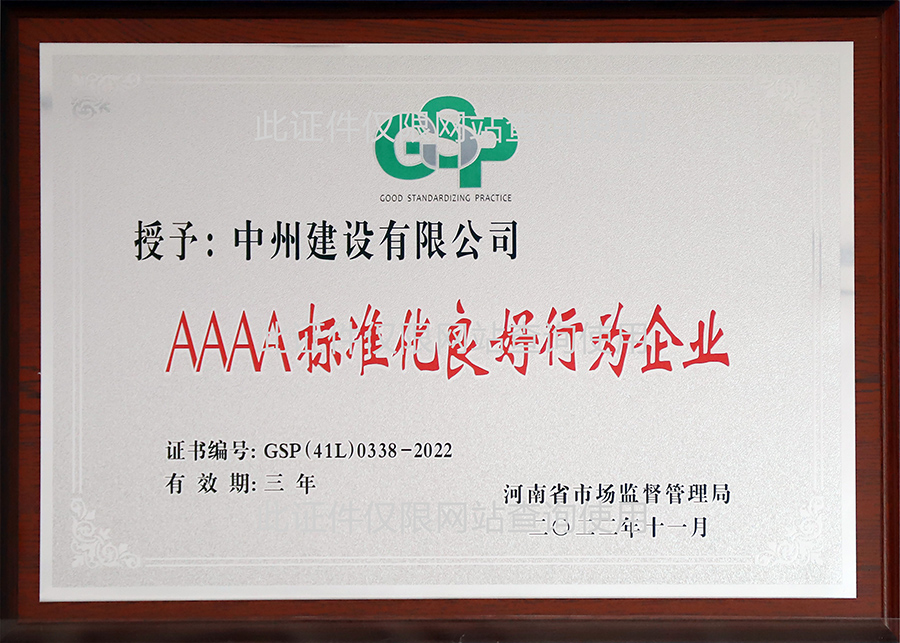 AAAA級標(biāo)準(zhǔn)化良好行為企業(yè)