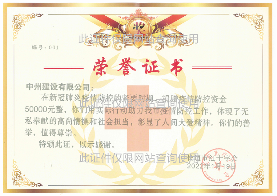 新冠肺炎捐贈(zèng)5萬元榮譽(yù)證書